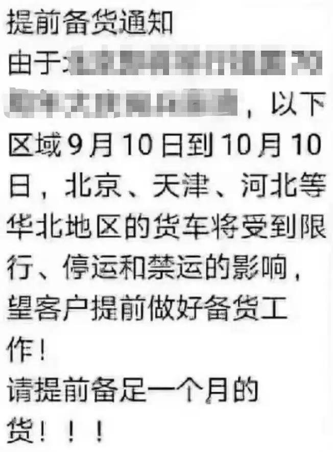 另外,京津冀周邊各大企業(yè)表示:由于十一臨近,河北、天津、北京等華北地區(qū)的貨車將受到限行、停運、禁運的影響。