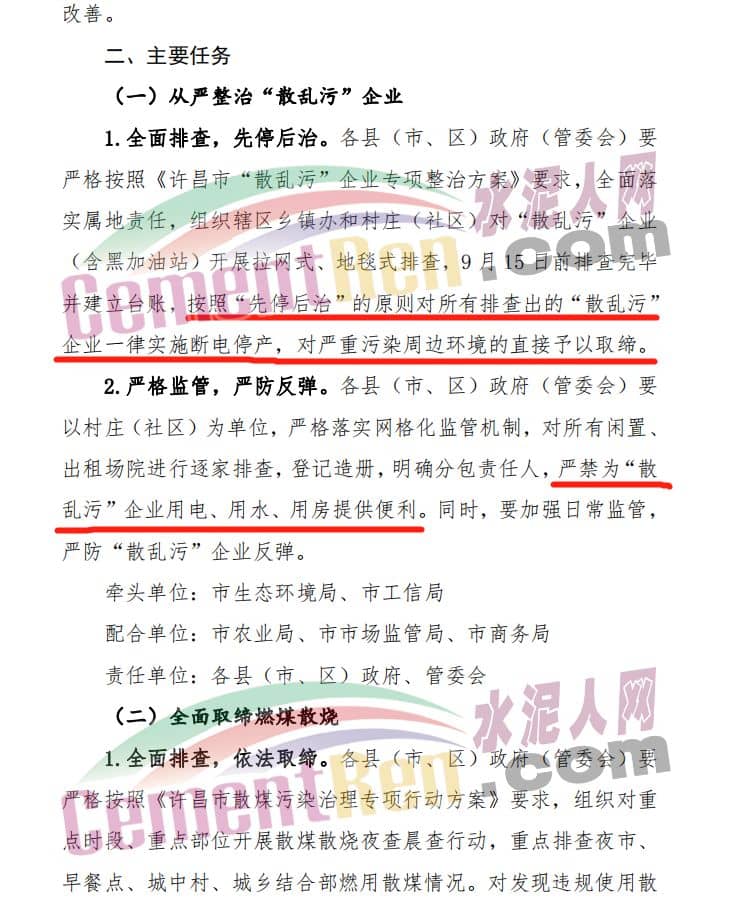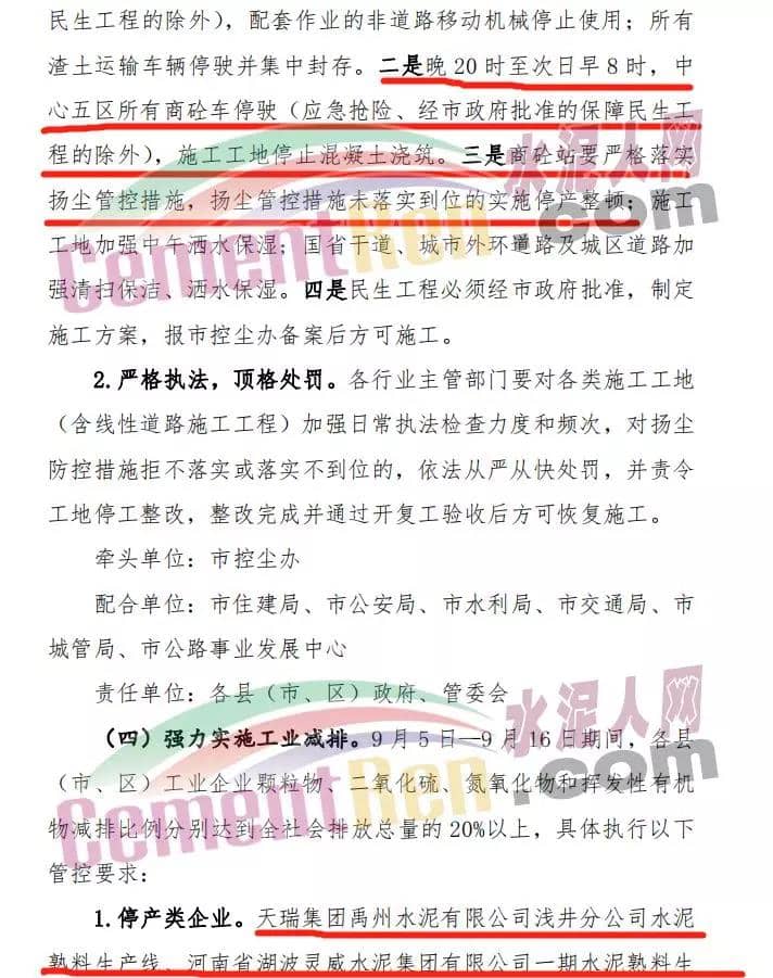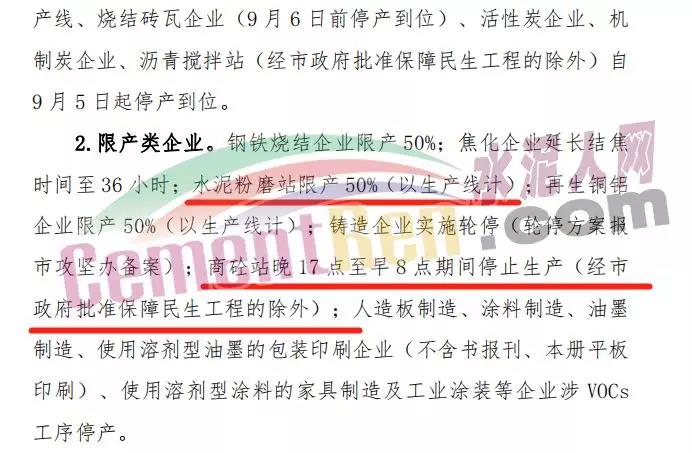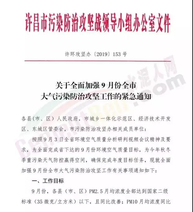 與此同時(shí),許昌市污染防治攻堅(jiān)戰(zhàn)領(lǐng)導(dǎo)小組發(fā)布關(guān)于全面加強(qiáng)9月份全市大氣污染防治攻堅(jiān)工作的緊急通知,通過對水泥企業(yè)、商砼企業(yè)的停限產(chǎn)有了明確的規(guī)定。部分內(nèi)容如下: