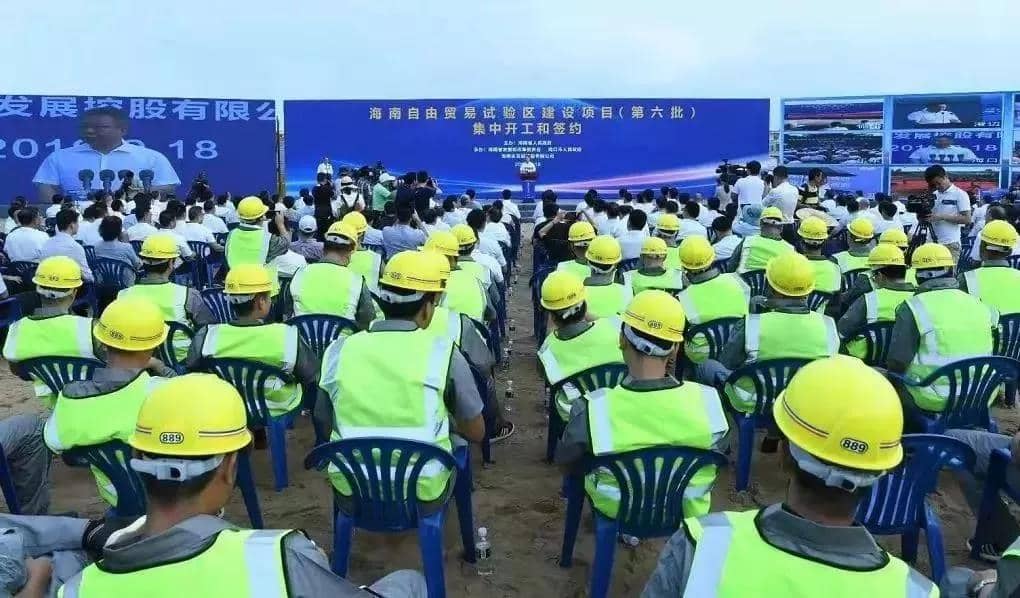 海南自由貿(mào)易試驗區(qū)建設(shè)項目(第六批)集中開工和簽約活動現(xiàn)場。
