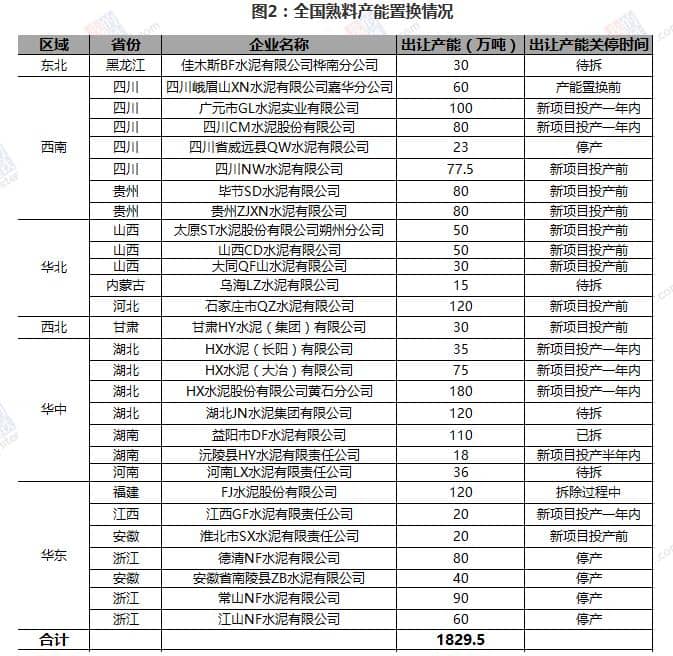 隨著2019年水泥行業(yè)大氣污染防治攻堅(jiān)戰(zhàn)實(shí)施方案實(shí)施,要求實(shí)現(xiàn)水泥行業(yè)壓減落后熟料產(chǎn)能7000萬(wàn)噸,全國(guó)平均產(chǎn)能利用率達(dá)到70%以上。自律淘汰2000t/d以下的水泥生產(chǎn)線,對(duì)2000t/d以上的技術(shù)落后的生產(chǎn)線進(jìn)行減量置換改造。實(shí)際2019年全國(guó)水泥行業(yè)落實(shí)情況如何呢?百年建筑網(wǎng)行情資訊中心對(duì)產(chǎn)線更替情況進(jìn)行了統(tǒng)計(jì):