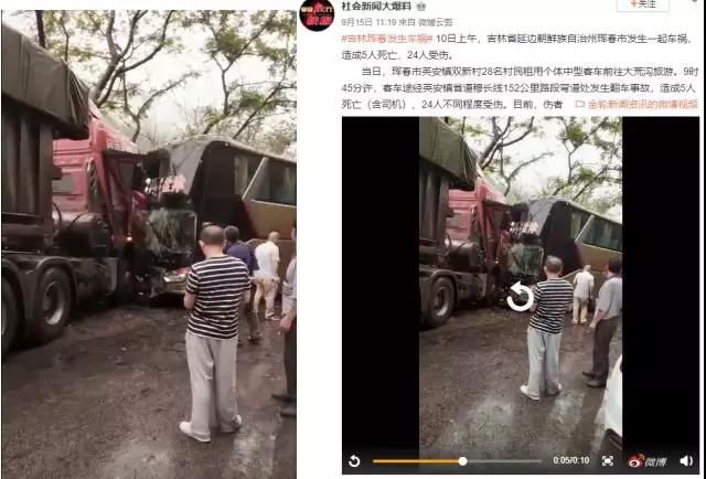 9月10日9時(shí)許,一輛吉H76716號(hào)中型客車途經(jīng)吉林省延邊市琿春市英安鎮(zhèn)去往大荒溝村公路一處彎道時(shí)發(fā)生側(cè)翻,造成5人死亡、24人受傷。