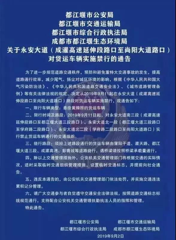 3、都江堰永安大道北段大型貨車禁行。