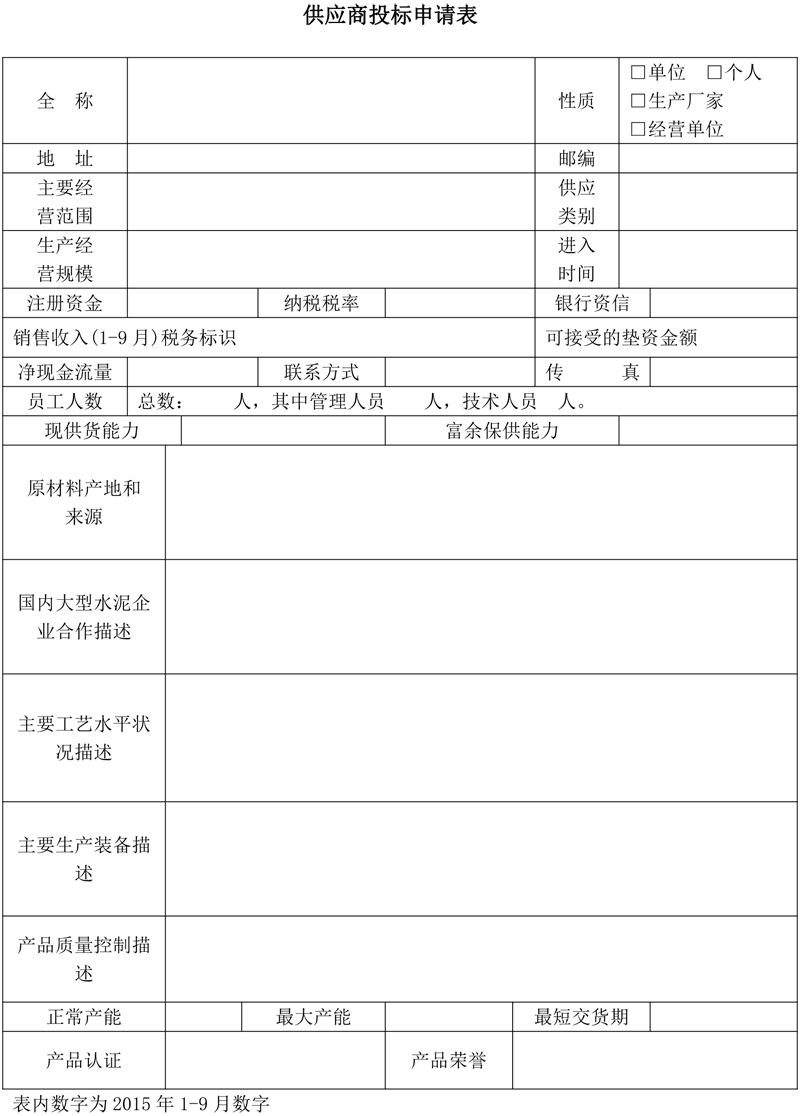 1、資料文件包括:企業(yè)主要資質(zhì)證明文件(加蓋公章);檢修安裝型企業(yè)除提供主要資質(zhì)證明文件外還需提供安全生產(chǎn)許可證、質(zhì)量體系認(rèn)證證書等相關(guān)資質(zhì)文件;聯(lián)系人基本信息;招標(biāo)商投標(biāo)報名申請表、近三年業(yè)績清單。