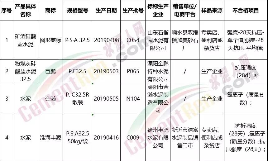 據(jù)通報(bào),2019年第二季度,省市場(chǎng)監(jiān)管局組織對(duì)建筑和裝飾裝修材料、農(nóng)業(yè)生產(chǎn)資料、機(jī)械及安防產(chǎn)品等3大類(lèi)29種產(chǎn)品質(zhì)量進(jìn)行了監(jiān)督抽查。共抽查產(chǎn)品2733批次,合格2481批次,平均合格率為90.8%。其中,在江蘇生產(chǎn)企業(yè)抽樣1162批次,合格1068批次,合格率為91.9%;在市場(chǎng)實(shí)體店購(gòu)樣1317批次,合格1212批次,合格率為92%;在電商平臺(tái)購(gòu)樣254批次,合格201批次,合格率為79.1%。建筑和裝飾裝修材料。抽查熱軋帶肋鋼筋、冷軋帶肋鋼筋、水泥、建筑防水涂料、建筑用鋼化玻璃、供水用塑料管材(PPR、PVC)、鋼筋混凝土排水管、鋁合金建筑型材、建筑保溫材料9種產(chǎn)品726批次,合格631批次,合格率為86.9%。其中,抽查產(chǎn)品150批次,合格146批次,合格率為97.3%。抽查不合格項(xiàng)目為強(qiáng)度、氯離子含量2項(xiàng)指標(biāo),有3批次產(chǎn)品的強(qiáng)度、2批次產(chǎn)品的氯離子含量項(xiàng)目不合格。不合格樣品的標(biāo)稱(chēng)生產(chǎn)企業(yè)涉及山東石榴園水泥有限公司、溧陽(yáng)金鵬特種水泥有限公司、溧陽(yáng)市金瀨水泥制造有限公司、徐州豐源水泥有限公司。水泥抽檢不合格名單