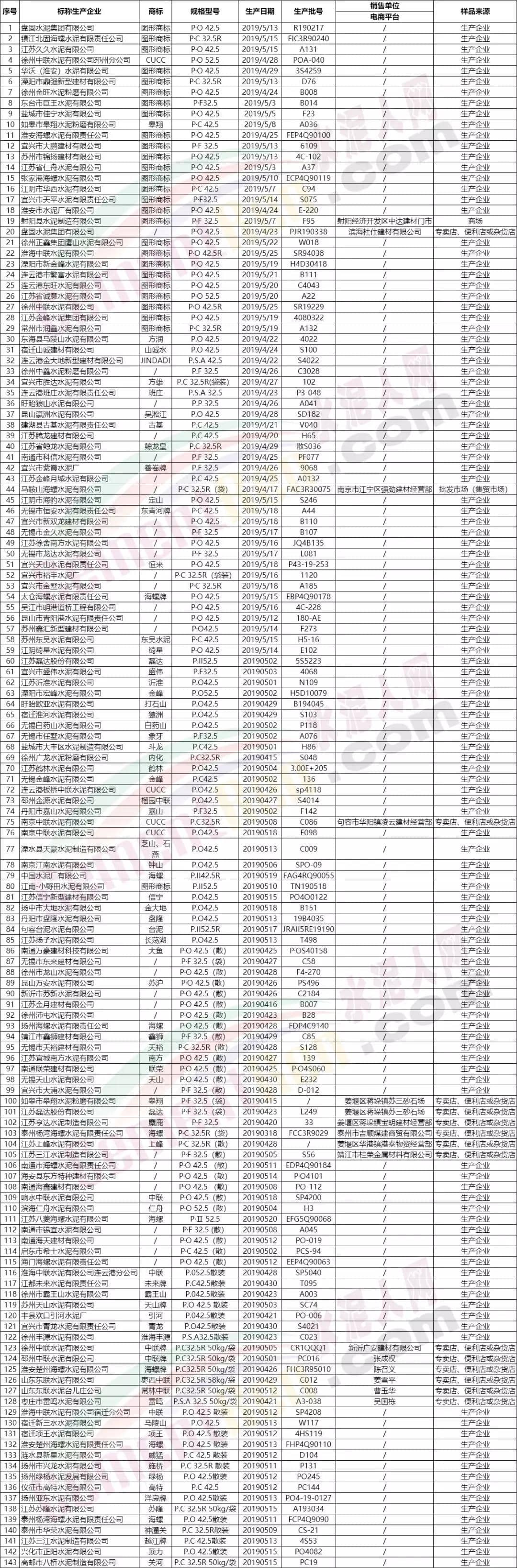 水泥抽檢合格名單