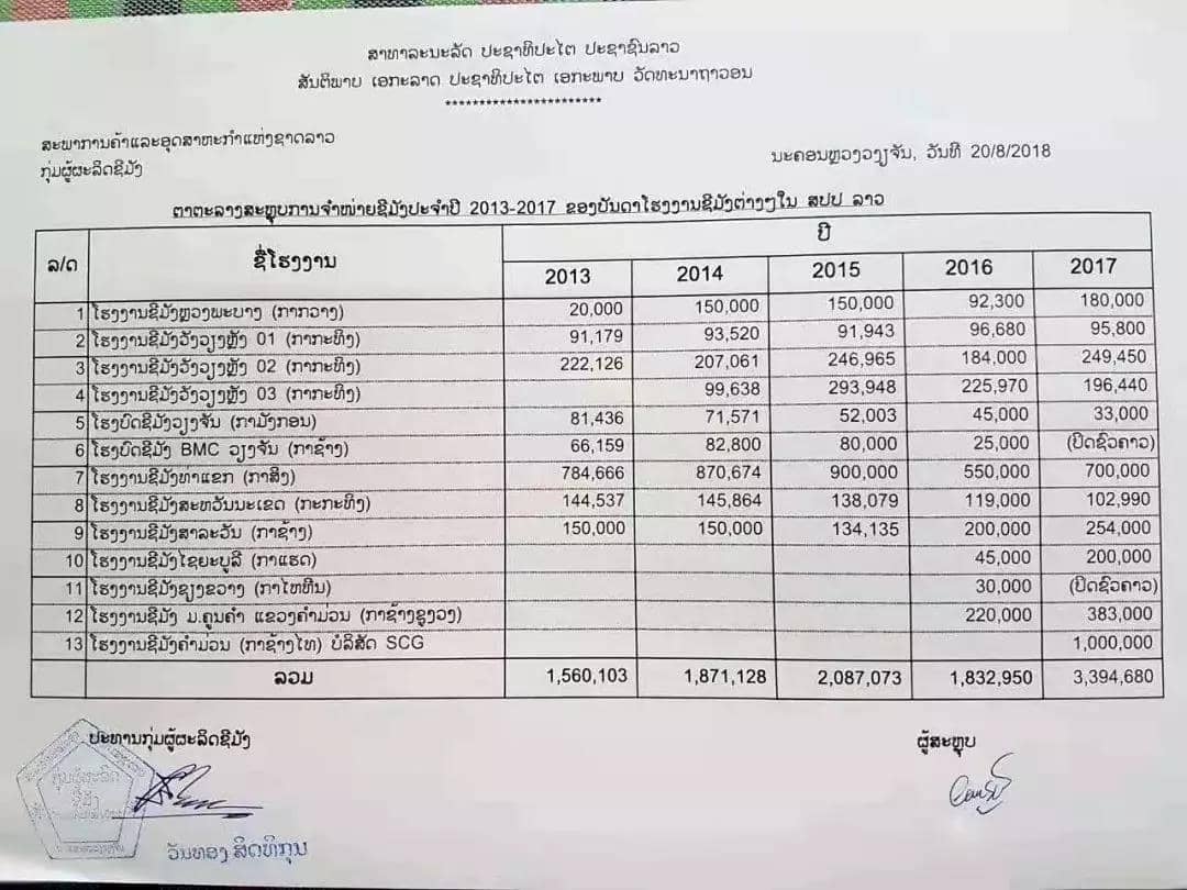 根據(jù)2018年統(tǒng)計(jì)(來自水泥生產(chǎn)商集團(tuán)的信息),老撾在全國范圍內(nèi)共有13個(gè)水泥廠,自2013年至2015年,共有9個(gè)廠有生產(chǎn)和銷售活動(dòng)。