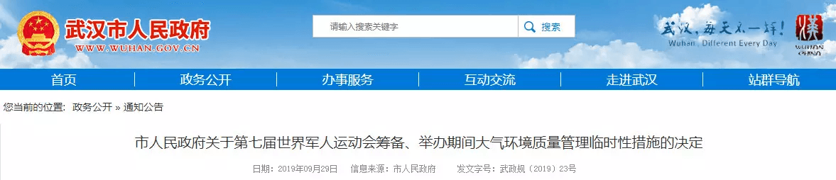 水泥人網(wǎng)消息:湖北武漢全力迎接軍運(yùn)會,決定在武漢行政區(qū)內(nèi)實(shí)施大氣環(huán)境質(zhì)量管理措施。