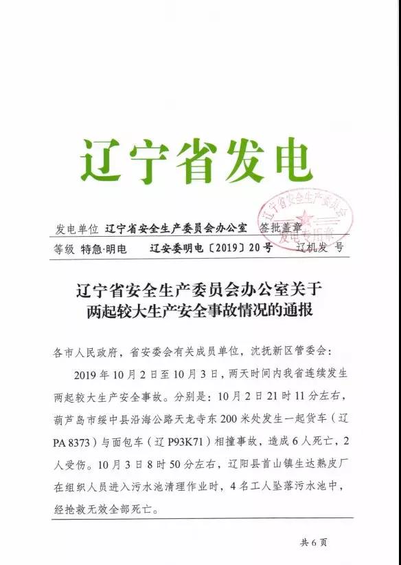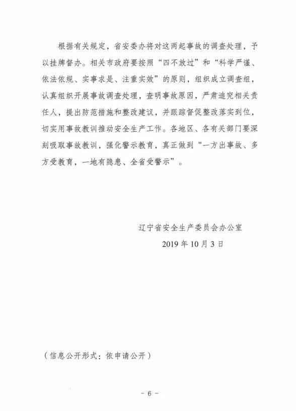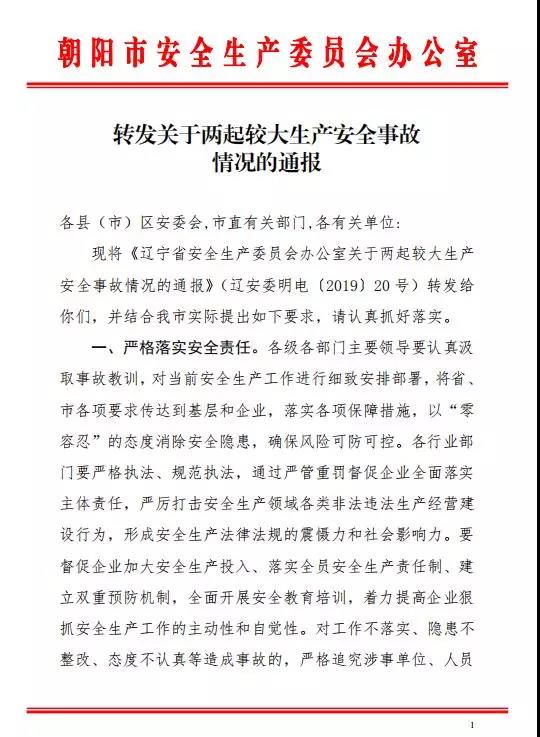 關(guān)于上述通知中提到的較大生產(chǎn)安全事故,遼寧省朝陽(yáng)市安委會(huì)辦公室近日轉(zhuǎn)發(fā)了相關(guān)事故情況的通報(bào)。通報(bào)文件如下: