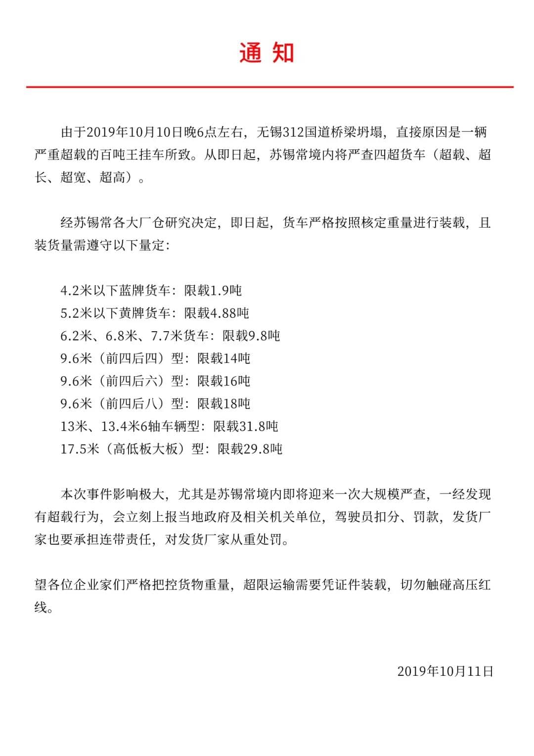 10月10日事件發(fā)生后,一經(jīng)報道瞬間引起軒然大波,江浙滬等鄰近地區(qū)的運輸公司和配貨站紛紛接到交管部門通知,要求嚴格按照行駛證上的核定重量裝載貨物。