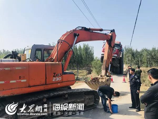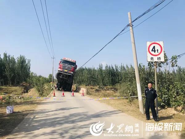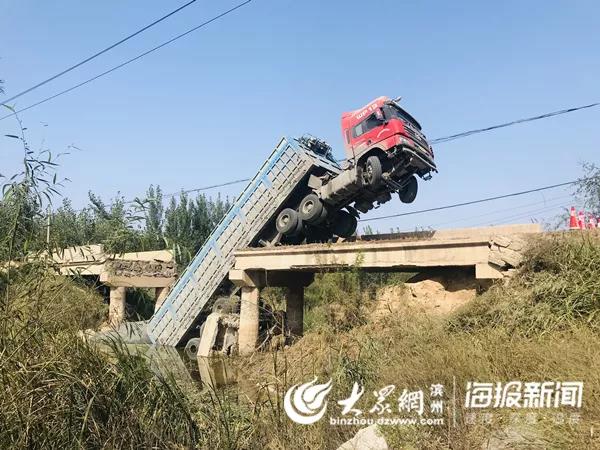 經(jīng)初步調(diào)查,13日凌晨4點左右,一輛魯MAN226冀JSH50掛重型半掛貨車沿渤海十八路由南向北行駛至市西辦事處李茂家村附近,右轉(zhuǎn)彎進(jìn)入連接渤海十八路與李茂家村村西鄉(xiāng)間路的一座寬4米左右的小橋時,致使橋面坍塌?,F(xiàn)場貨車呈翹起之勢,車頭懸于半空中,車尾插入水中,事故未造成人員傷亡。