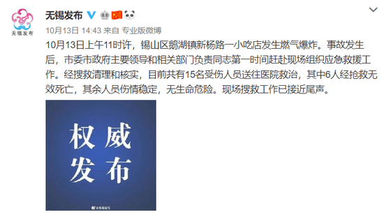 10月13日上午11時許,無錫市錫山區(qū)鵝湖鎮(zhèn)新楊路一小吃店發(fā)生燃氣爆炸,共造成9人死亡,10人受傷。