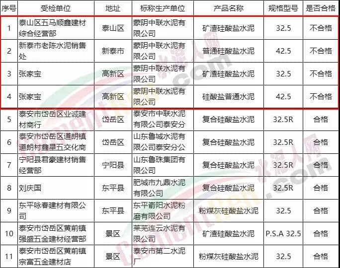 標(biāo)識生產(chǎn)單位地址均為山東省蒙陰縣蒙陰鎮(zhèn)東城村;包裝袋上標(biāo)注商標(biāo)均為蒙陰中聯(lián);不合格樣品的不合格項目主要有氯離子、燒失量、3天強(qiáng)度、28天強(qiáng)度等。經(jīng)營者分別是泰山區(qū)五馬順鑫建材綜合經(jīng)營部,新泰市老陳水泥銷售處,北集坡鎮(zhèn)張家寶。通報稱,在規(guī)定的異議期內(nèi),泰安市局未收到經(jīng)營者、生產(chǎn)者提出的書面的檢驗結(jié)論異議或者復(fù)檢申請。后期的執(zhí)法辦案過程中,蒙陰中聯(lián)水泥有限公司向執(zhí)法部門書面出具了《蒙山中聯(lián)牌水泥真?zhèn)舞b別通知書單》,認(rèn)為現(xiàn)場水泥不是蒙陰中聯(lián)水泥有限公司“蒙山中聯(lián)”品牌水泥。