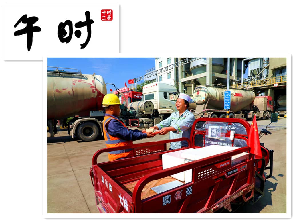 午時(11:00—13:00)“午時紅日正居中”。穿梭在散裝車之間,為客戶提供午餐服務(wù),踐行“客戶至上”的服務(wù)理念。