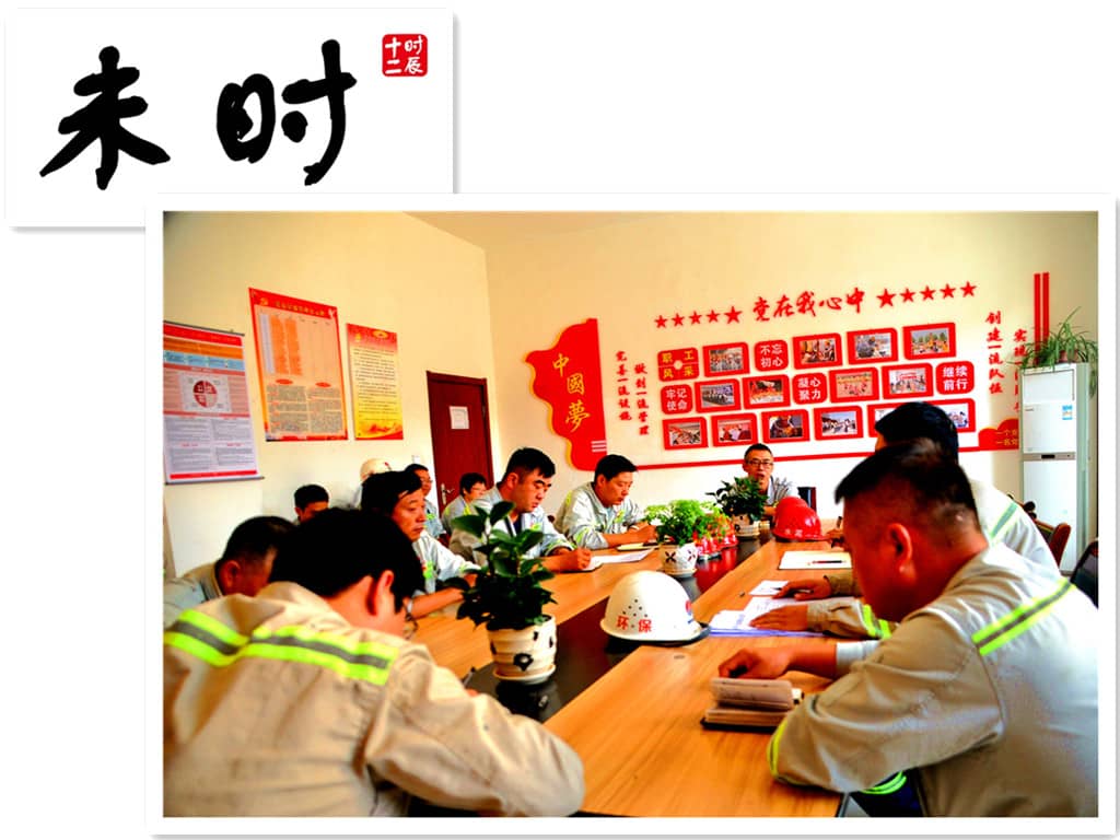 未時(13:00—15:00)“未時紅日過街來”。生產(chǎn)設(shè)備部正在召開臨時會議,齊心協(xié)力商討2#水泥磨的檢修計劃,及圍繞此計劃實施的安全生產(chǎn)細(xì)則。