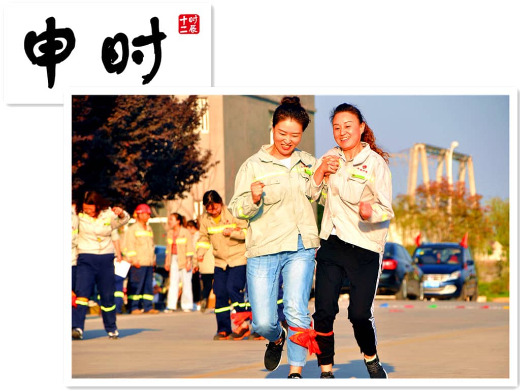 申時(15:00—17:00)辦公樓 前舉辦的職工趣味活動熱鬧非凡,每個職工的臉上無不洋溢著燦爛的笑容。