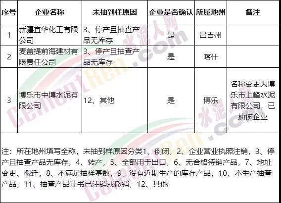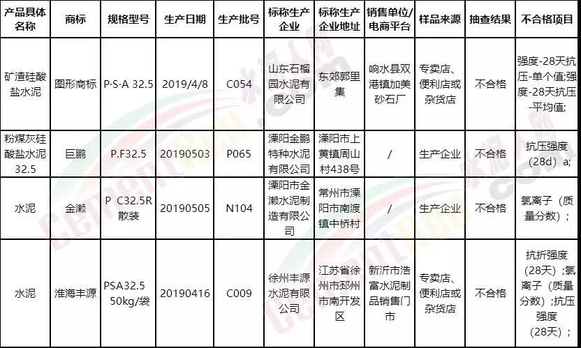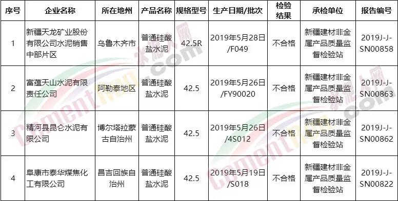 2019年自治區(qū)水泥產品質量監(jiān)督抽查未抽樣企業(yè)名單不僅新疆地區(qū),近一年,已經多個區(qū)域市場監(jiān)督管理局通報抽檢不合格品名單詳情如下: