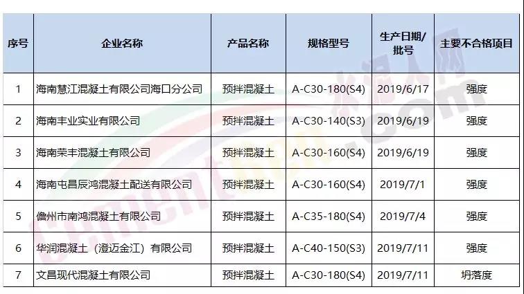2019年海南省預(yù)拌混凝土產(chǎn)品質(zhì)量