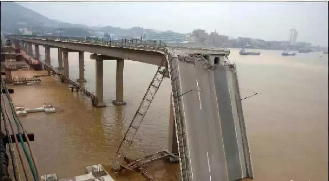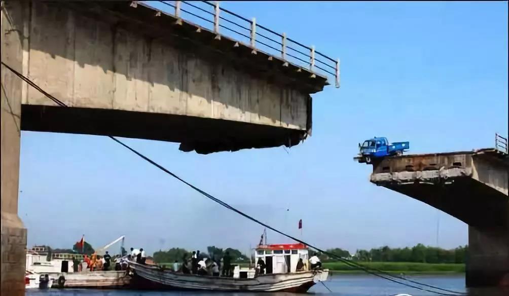津晉高速公路匝道橋坍塌事故現(xiàn)場,不等你拆,我自己先拆了。九江大橋,沒船結實的下場。