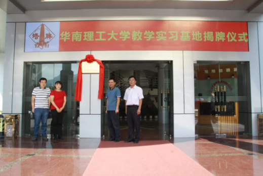 10月22日, 塔牌集團在總部大樓舉行華南理工大學教學實習基地揭牌儀式,塔牌集團總經(jīng)理何坤皇,黨委書記、工會主席李斌,華南理工大學材料學院副院長殷素紅教授、輔導員李儉老師共同為“華南理工大學教學實習基地”揭牌。塔牌集團黨委副書記、常務副總經(jīng)理徐政雄,副總經(jīng)理丘增海、丘偉軍,各級管理技術干部和華工畢業(yè)實習生等參加了揭牌儀式。