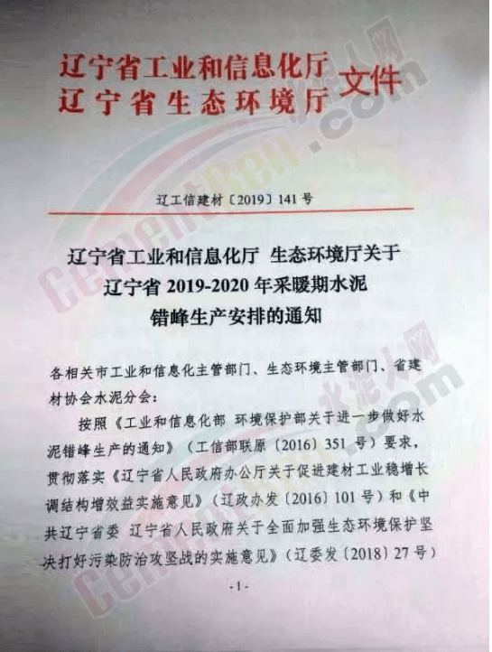 水泥人網(wǎng)消息:日前,遼寧省工業(yè)和信息化廳、生態(tài)環(huán)境廳聯(lián)合下發(fā)關(guān)于《遼寧省2019年-2020年采暖期水泥錯(cuò)峰生產(chǎn)安排的通知(遼工信建材【2019】141號(hào))》文件要求,2019年11月1日至2020年3月31日,省內(nèi)所有水泥熟料生產(chǎn)線實(shí)施錯(cuò)峰生產(chǎn)。其中大連地區(qū)停窯錯(cuò)峰時(shí)間自11月5日至2020年4月5日。