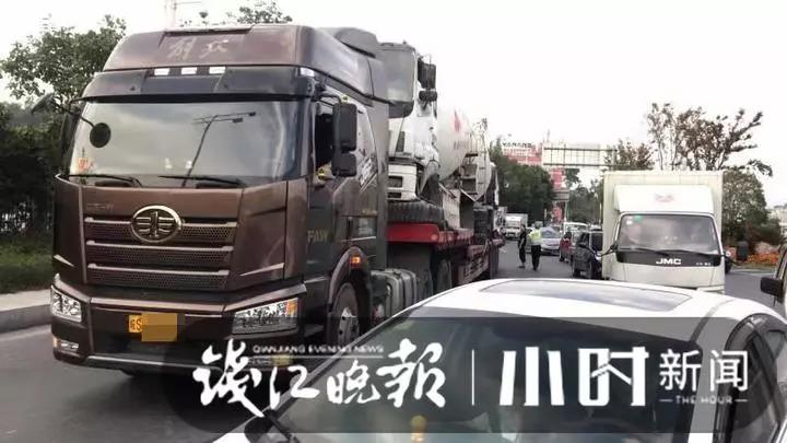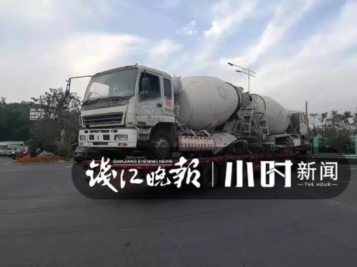 據(jù)了解,這4輛水泥攪拌車屬于同一公司所有,因業(yè)務(wù)需要,需轉(zhuǎn)移到其他城市,為節(jié)省運(yùn)費(fèi),所屬公司想出“奇招”,將其放至半掛車,以“車背車”的方式拖運(yùn)。(來源:錢江24小時(shí))