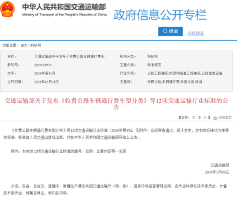 前不久,交通運輸部發(fā)布了《收費公路車輛通行費車型分類》行業(yè)標(biāo)準(zhǔn)的公告,意味著按車(軸)型收取通行費,并且新的車型劃分標(biāo)準(zhǔn)已正式發(fā)布,新標(biāo)即將進入施行階段。新標(biāo)準(zhǔn)中的一個細(xì)節(jié)值得關(guān)注,那就是實施日期由預(yù)計的2020年1月1日,提前到了2019年11月1日(本周五),足見新標(biāo)準(zhǔn)實施的迫切性。