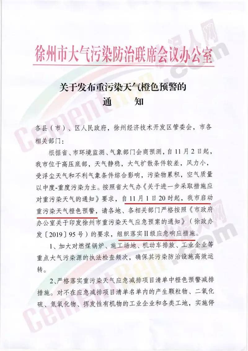 日前,徐州市大氣污染防治聯(lián)席會(huì)議辦公室發(fā)布《關(guān)于發(fā)布重污染天氣橙色預(yù)警的通知》稱(chēng)自11月1日20時(shí)起啟動(dòng)重污染天氣橙色預(yù)警,要求各地,各相關(guān)部門(mén)按要求組織落實(shí)II級(jí)應(yīng)急響應(yīng)措施。全文如下: