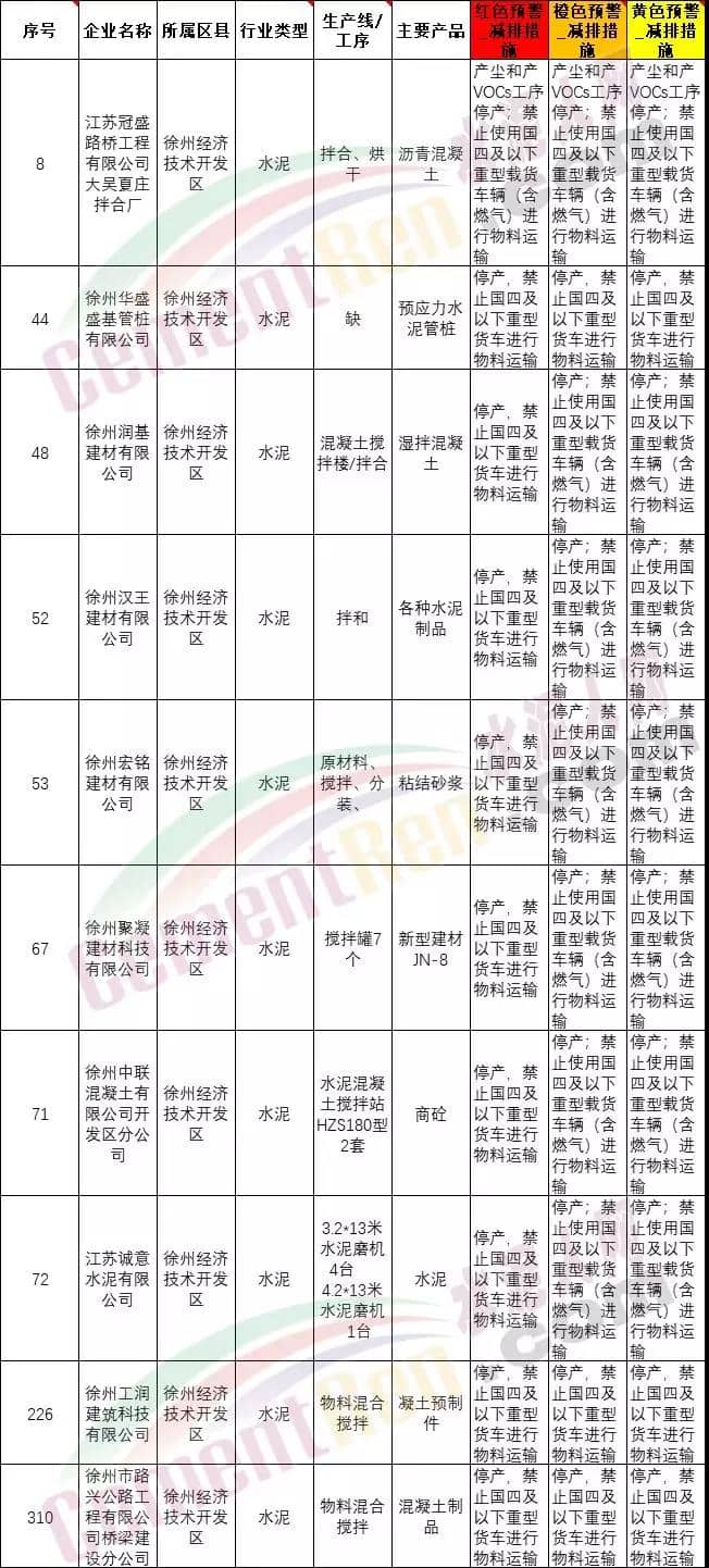 徐州市重污染天氣應(yīng)急減排項(xiàng)目清單(工業(yè)源)
