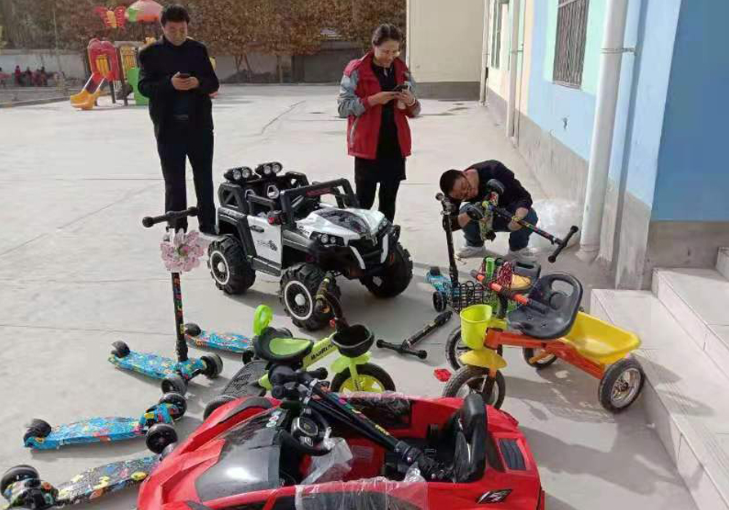 幼兒自行車、滑板等,共計4000余元的娛樂器材和兒童玩具,送到