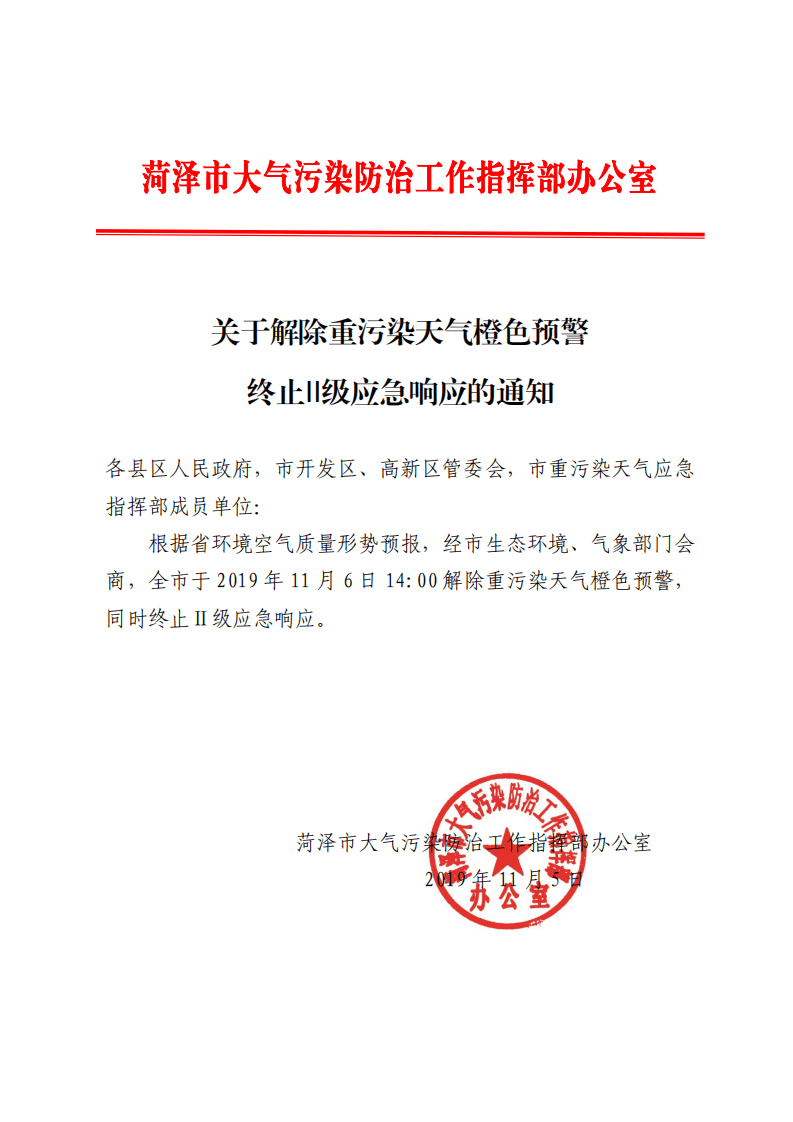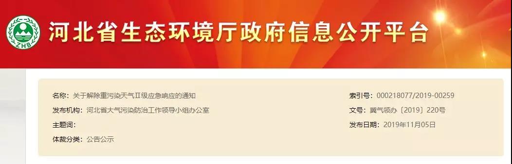 11月5日,河北省生態(tài)環(huán)境廳發(fā)布關(guān)于解除重污染天氣Ⅱ級(jí)應(yīng)急響應(yīng)的通知。按照《河北省重污染天氣應(yīng)急預(yù)案》要求,區(qū)域二城市(唐山、廊坊、滄州、秦皇島)于11月7日8時(shí)解除重污染天氣Ⅱ級(jí)應(yīng)急響應(yīng);區(qū)域一城市(石家莊、保定、衡水、邢臺(tái)、邯鄲、定州、辛集、雄安新區(qū))于11月10日8時(shí)解除重污染天氣Ⅱ級(jí)應(yīng)急響應(yīng)。