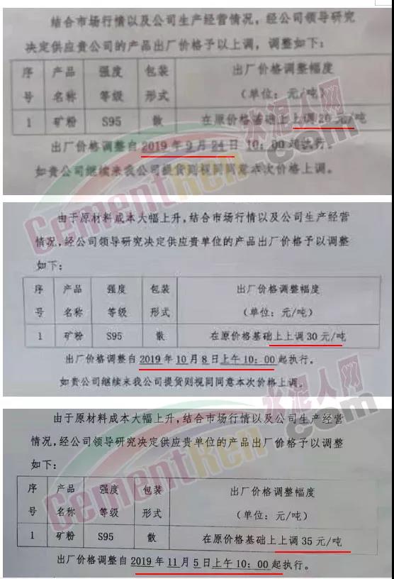 從9月下旬起,局部區(qū)域企業(yè)S95礦粉已經三次發(fā)布調價通知,合計漲幅近100元,并且供貨緊張。