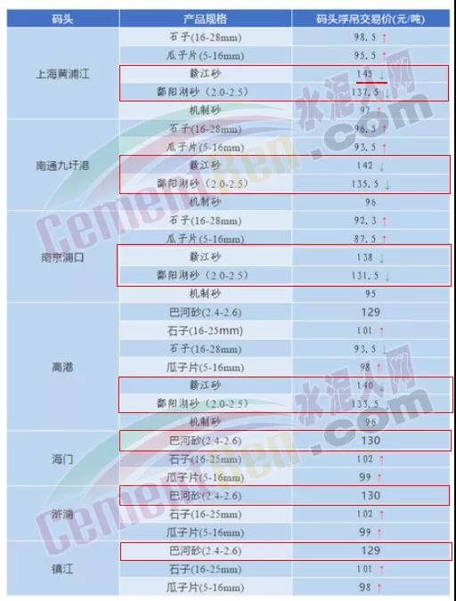 長江部分港口江砂已經超過了100元/噸,其中上海黃浦江贛江砂碼頭浮吊交易價達到145元/噸。