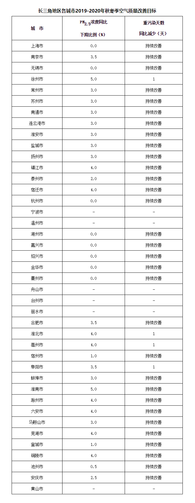 附件:1.長三角地區(qū)各城市2019-2020年秋冬季空氣質(zhì)量改善目標(biāo)