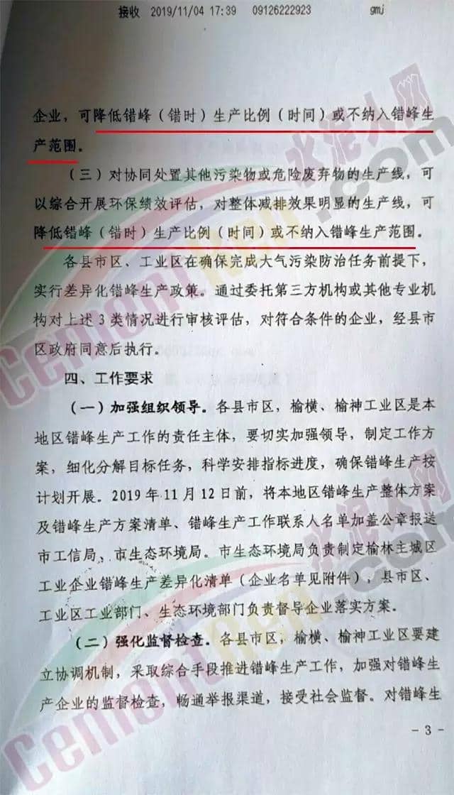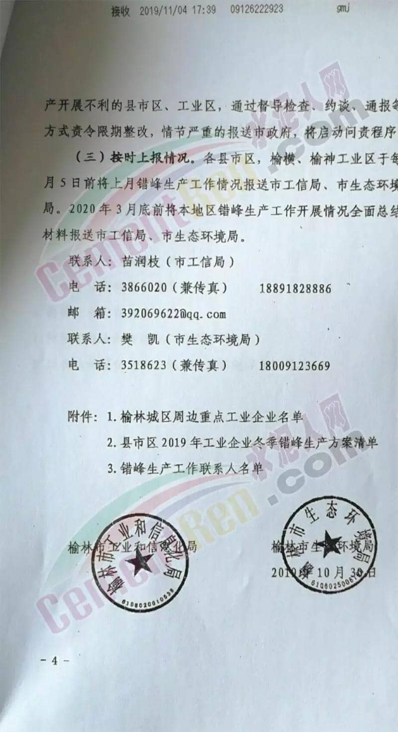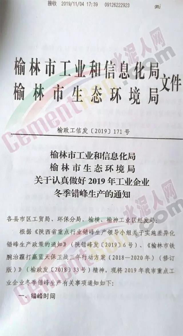 陜西榆林市錯(cuò)峰生產(chǎn)文件如下: