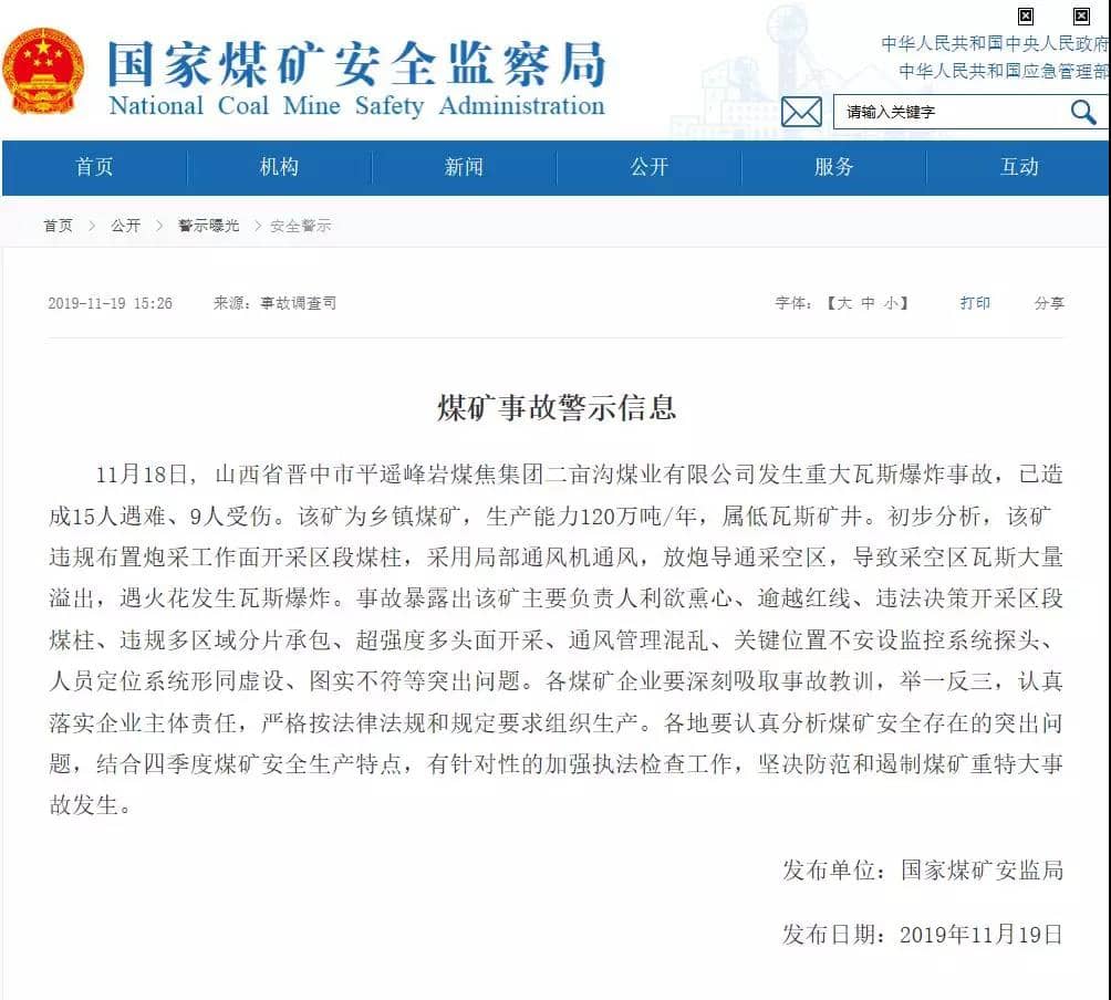 事故暴露出該礦主要負(fù)責(zé)人利欲熏心、逾越紅線、違法決策開采區(qū)段煤柱、違規(guī)多區(qū)域分片承包、超強(qiáng)度多頭面開采、通風(fēng)管理混亂、關(guān)鍵位置不安設(shè)監(jiān)控系統(tǒng)探頭、人員定位系統(tǒng)形同虛設(shè)、圖實(shí)不符等突出問題。各煤礦企業(yè)要深刻吸取事故教訓(xùn),舉一反三,認(rèn)真落實(shí)企業(yè)主體責(zé)任,嚴(yán)格按法律法規(guī)和規(guī)定要求組織生產(chǎn)。各地要認(rèn)真分析煤礦安全存在的突出問題,結(jié)合四季度煤礦安全生產(chǎn)特點(diǎn),有針對性的加強(qiáng)執(zhí)法檢查工作,堅(jiān)決防范和遏制煤礦重特大事故發(fā)生。事故警示信息原文如下: