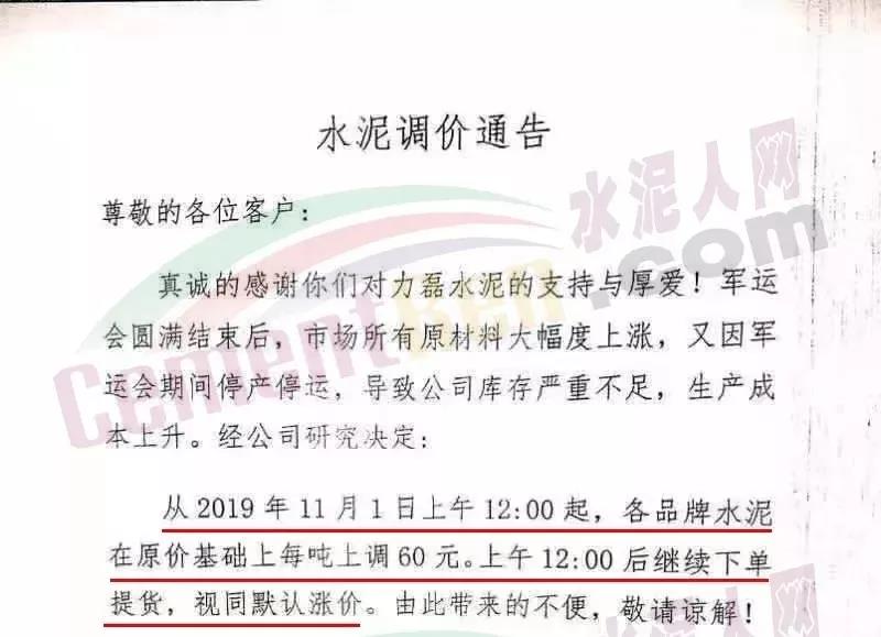 錦榮水泥自10月31日以來水泥價格連續(xù)上漲11次,其中從11月10日到11月18日,9天時間該企業(yè)連發(fā)了9張調(diào)價函。經(jīng)過11輪上漲,該企業(yè)P.O42.5水泥累計漲價高達300元/噸,目前P.O42.5散裝含票出廠價高達680元/噸,加上運費到位核心區(qū)域價格已突破700元/噸。 河南三門峽市澠池仰韶水泥廠自11月8日起連發(fā)三份漲價函,截止11月13日,澠池仰韶水泥42.5級散裝水泥出廠價為610元/噸,52.5級散裝水泥出廠價為710元/噸。近期河南區(qū)域水泥價格又出現(xiàn)持續(xù)暴跌現(xiàn)象,兩天就跌了150元/噸,而且近期還在向下調(diào)整,跌價空間幾乎把之前的漲幅全部抹平。這種大漲大跌的市場環(huán)境,是極為不正常的。福建區(qū)域粉磨站“沒米了”,漲30元/噸福建區(qū)域熟料供應緊張,部分粉磨站企業(yè)通知無水泥可賣。某水泥粉磨企業(yè)負責人對水泥人網(wǎng)表示:“沒米了!” 福建區(qū)域企業(yè),一直都是從廣東及廣西采購熟料,近來枯水加上治超,熟料到位價格上漲。福建區(qū)域多家企業(yè)便隨之上調(diào)水泥價格,上調(diào)幅度30元/噸。天津漲價,拉開了京津冀區(qū)域的漲價的序幕21日區(qū)域主導企業(yè)集體上調(diào)水泥價格。北京金隅水泥經(jīng)貿(mào)有限公司天津分公司發(fā)調(diào)價通知,由于目前企業(yè)受環(huán)保錯峰、道路運輸治理等因素的影響,導致企業(yè)水泥庫存較低;同時,礦粉等原材料價格持續(xù)走高、京津冀東地區(qū)環(huán)保力度加大,環(huán)保投入增加,水泥生產(chǎn)成本大幅上漲。企業(yè)自11月21日8時起,PO42.5及以上規(guī)格散裝水泥產(chǎn)品出廠價格在原價格基礎上上調(diào)20元/噸。 陜西是兩輪漲價,共漲60元/噸,遭遇河南水泥車“搶購”本月15日前后陜西關中地區(qū)冀東,聲威,堯柏等多家主導企業(yè)通知上調(diào)水泥價格,漲幅30元/噸。18日前后大批河南水泥運輸車到陜西關中區(qū)域調(diào)運水泥,令區(qū)域內(nèi)庫存減少,部分企業(yè)再次上調(diào)30元/噸。一片漲勢之中唯貴州區(qū)域遭遇“寒冬”,水泥價格低到200元以下,甚至有局部區(qū)域出廠價 180元/噸左右。1200元~180元,1020元的差價,是水泥行業(yè)冰火兩重天的現(xiàn)狀。目前的水泥價格似乎已處在了“失控”邊緣。部分企業(yè)又開啟了大票模式,在今年斷供后又開售2020年的水泥期貨。與上年相比,華東上海周邊區(qū)域似乎較平靜。上年末,華東區(qū)域水泥價高,下游競價銷售,出現(xiàn)千元左右一噸的水泥。后隨著華南廣西區(qū)域熟料和水泥到位,價格才逐步趨于平穩(wěn)。今年1季度下游施工企業(yè)提前備貨,也為今年華東區(qū)域的市場穩(wěn)定提前做了“鋪墊”。另據(jù)消息稱,華東沿海區(qū)域今年以來一直有大企業(yè)采購進口熟料到港,區(qū)域內(nèi)熟料供應平穩(wěn),繼而水泥價格也處于穩(wěn)中有漲態(tài)勢。