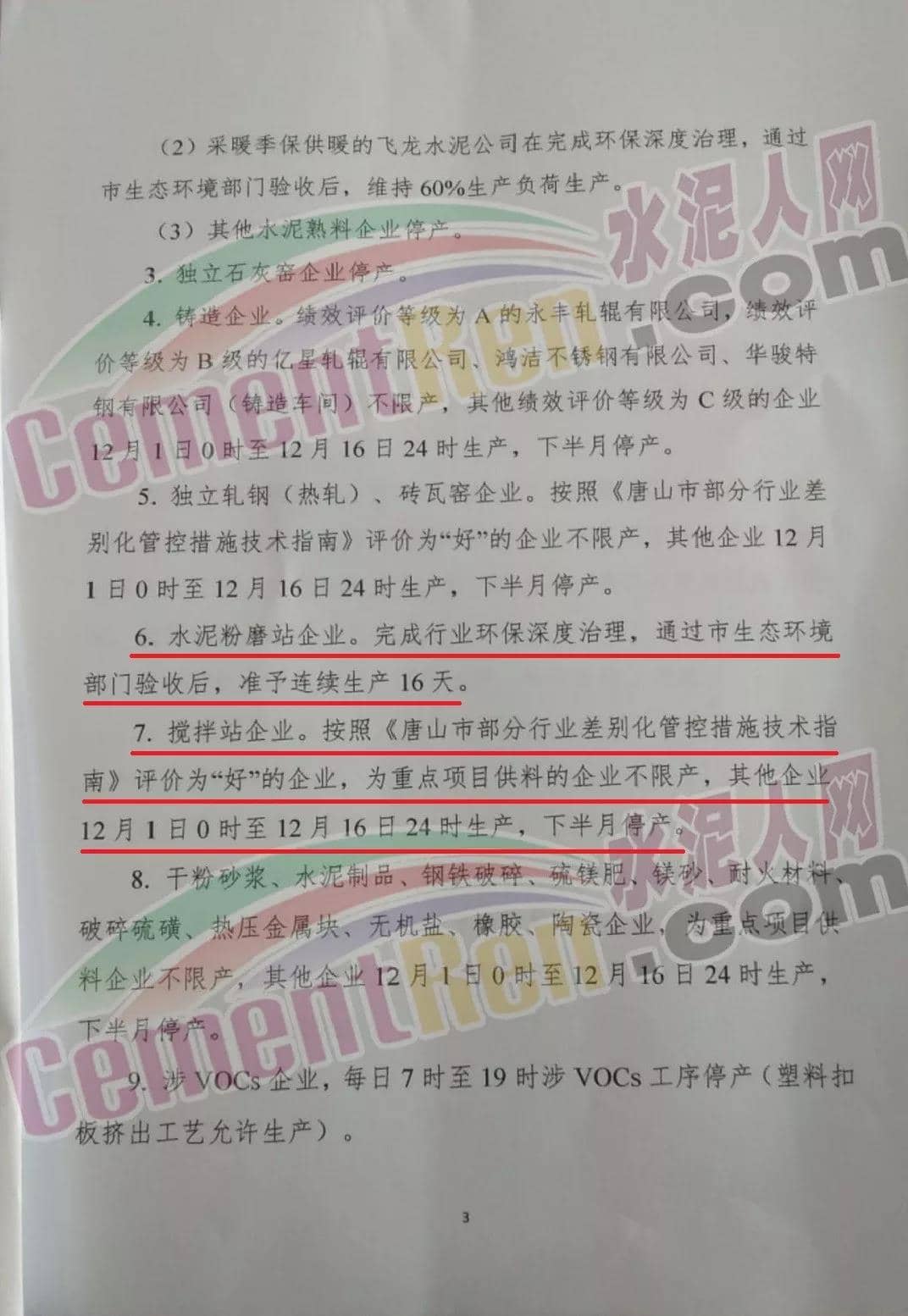 (4) 其他水泥企業(yè),限產(chǎn)比例不低于50%。