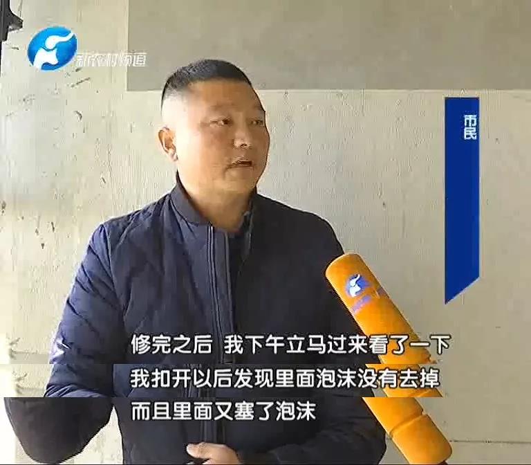 隨后楊先生便讓維修人員進(jìn)行了第一次維修。在維修后,楊先生發(fā)現(xiàn)里面的泡沫沒有去掉,而且里面又塞了泡沫,于是他再次要求樓盤項(xiàng)目部解決此事。