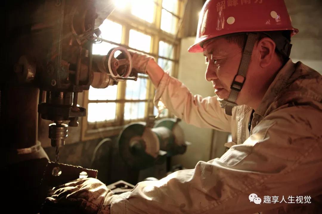 2019年8月15日韶峰南方水泥,機修工萬申根在加工磨機部件的易損零配件。