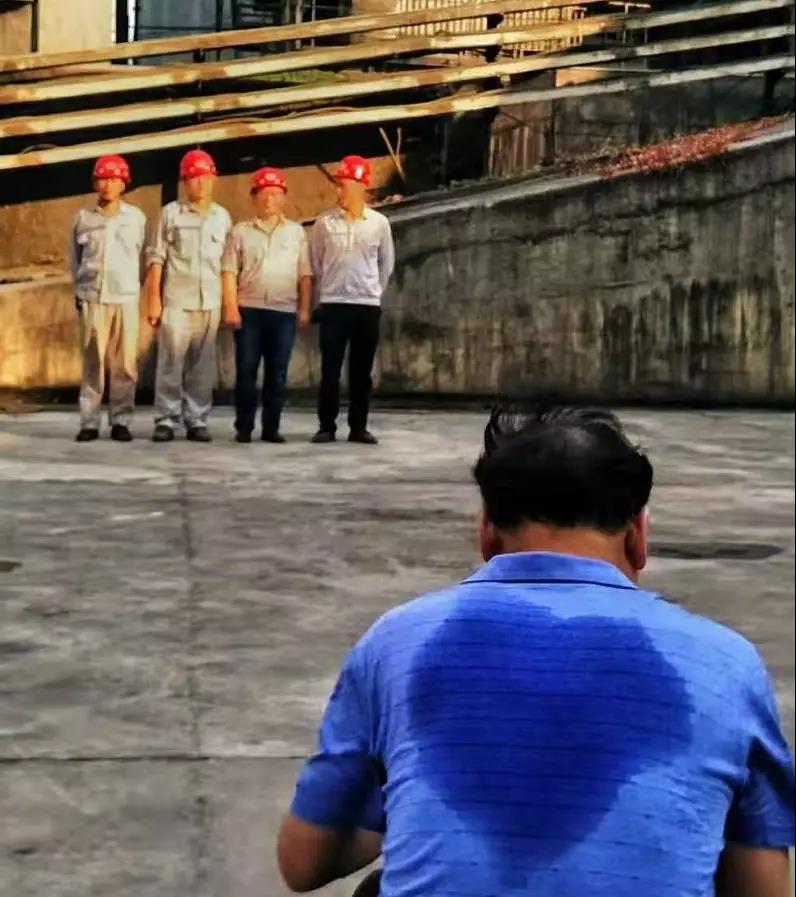 2019年7月15日常德南方水泥,外協(xié)窯爐維修工晏勝利與磨機外的工人溝通。
