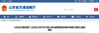 日前,山東省交通運輸隊發(fā)布了《關(guān)于禁止違法超限超載運輸車輛同行高速公路的通告》稱,為貫徹落實國務(wù)院決策部署,進(jìn)一步加強(qiáng)高速公路違法超限超載治理工作,維護(hù)路產(chǎn)路權(quán)和人民生命財產(chǎn)安全,根據(jù)《中華人民共和國公路法》、《中華人民共和國道路交通安全法》等法律法規(guī)規(guī)定和國務(wù)院有關(guān)文件要求,決定2019年12月1日8時起,禁止違法超限超載運輸車輛通行。