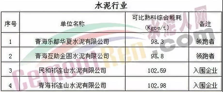 近日,青海省工業(yè)信息化廳發(fā)布了《青海省2018年電解鋁、水泥、鐵合金行業(yè)能效“領(lǐng)跑者”及入圍企業(yè)名單公示》。 其中,水泥行業(yè)青海樂都華夏水泥有限公司、青?;ブ饒A水泥有限公司、民和祁連山水泥有限公司、青海祁連山水泥有限公司4家水泥企業(yè)入選能效“領(lǐng)跑者”及入圍企業(yè)。 名單如下: (來源:青海省工業(yè)信息化廳)