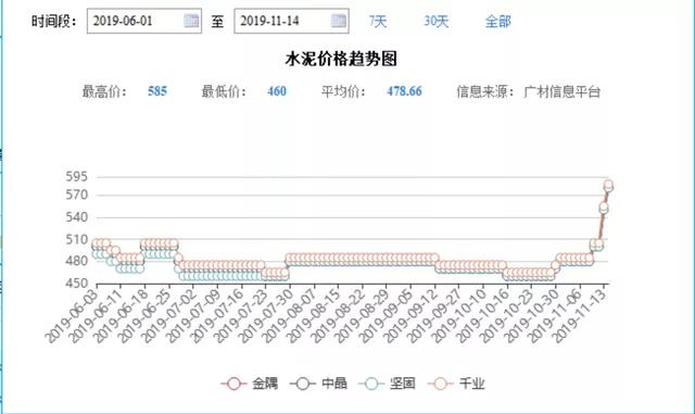 進(jìn)入11月以后,華北、華東、華南等多地水泥市場(chǎng)普遍出現(xiàn)價(jià)格上漲局面,其中漲幅最高的河南鄭州等個(gè)別地區(qū)甚至出現(xiàn)一個(gè)月內(nèi)漲價(jià)200元/噸的巨大漲幅,安陽(yáng)當(dāng)?shù)氐乃鄡r(jià)格一度也達(dá)到650~660元/噸的高位,遠(yuǎn)高于同屬北方的河北、山東、山西等地。