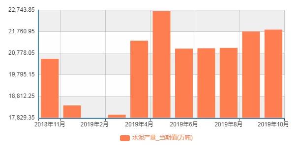 近一年來國(guó)內(nèi)月度水泥產(chǎn)量(單位:萬噸)