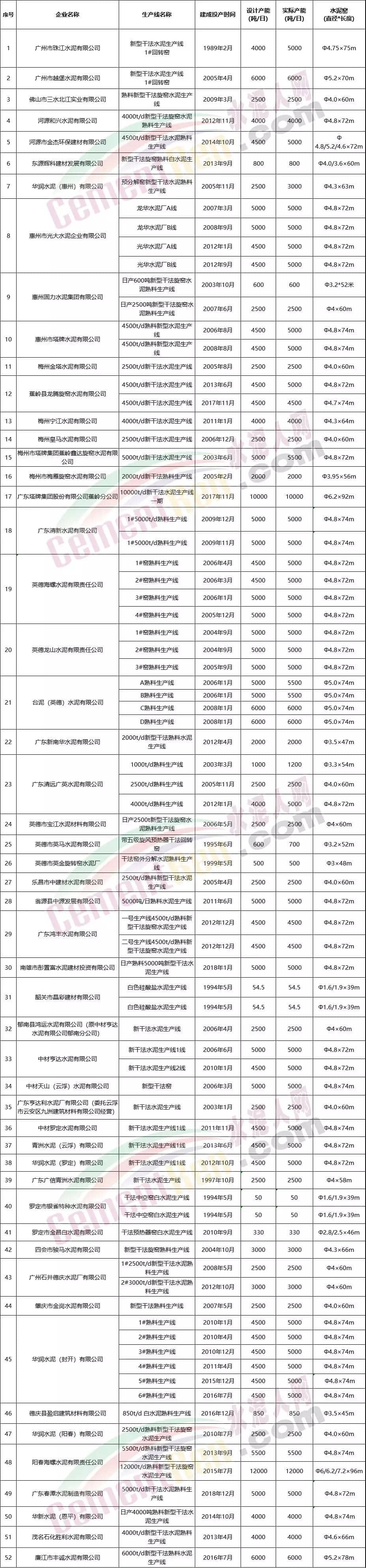 6 廣東春潭水泥制造有限公司5000t/d新干法水泥熟料生產(chǎn)線哦2018年12月新投產(chǎn)生產(chǎn)線,關(guān)鍵設(shè)備 Φ4.8×72m回轉(zhuǎn)窯。產(chǎn)能置換方案詳見工信部公告(2015年第21號(hào))。