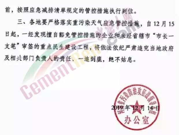 上述通知要求,凡是未經(jīng)省轄市”“市長(zhǎng)一支筆”審簽并向省污染防治攻堅(jiān)辦報(bào)備的重點(diǎn)民生建設(shè)工程,務(wù)必于12月14日18時(shí)前按照預(yù)警管控措施要求,停止土石方作業(yè)、建筑拆拆除、噴涂粉刷、護(hù)坡噴漿、混凝土攪拌等,停止礦山、砂石料廠、石板廠、石材廠等露天作業(yè)。凡是不在省污染防治攻堅(jiān)辦公布的重污染天氣績(jī)效分級(jí)、保障民生、戰(zhàn)略新興、軍工和外資外貿(mào)、綠色環(huán)保引領(lǐng)、綠色發(fā)展排行榜 排名靠前實(shí)施自主減排優(yōu)惠政策的企業(yè),以及各省轄市、縣 (市、區(qū))未經(jīng)省污染防治攻堅(jiān)辦審批同意,擅自放松管控要求實(shí)施豁免的各類工業(yè)企業(yè),務(wù)必于12月14日18時(shí)前,按照應(yīng)急減排清單規(guī)定的管控措施執(zhí)行到位。各地要嚴(yán)格落實(shí)重污染天氣應(yīng)急管控措施,自12月15日起,一經(jīng)發(fā)現(xiàn)擅自豁免管控措施的企業(yè)和未經(jīng)省轄市“市長(zhǎng)一支筆”審簽的重點(diǎn)民生建筑工程,將依法依紀(jì)嚴(yán)肅追究當(dāng)?shù)卣跋嚓P(guān)部門負(fù)責(zé)人的責(zé)任,一追到底,絕不姑息。 通知原文如下: