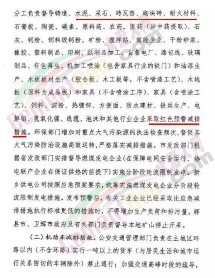 日前,新鄉(xiāng)市環(huán)境防治攻堅指揮部辦公室又發(fā)一文稱,自12月15日12時起,將新鄉(xiāng)市重污染天氣紅色預(yù)警(I級)降至橙色預(yù)警(II級),但是全市所有建材行業(yè)企業(yè)仍舊繼續(xù)執(zhí)行紅色預(yù)警管控措施。