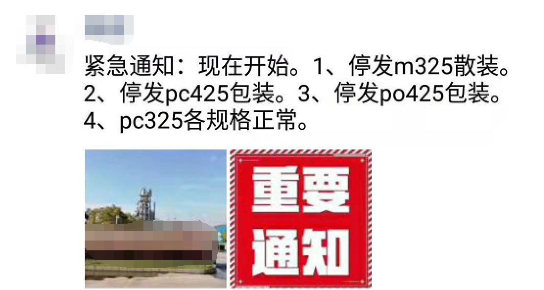 昨日(12月17日)湖南省某水泥企業(yè)經(jīng)銷商發(fā)緊急通知稱,停發(fā)M32.5散裝、PC42.5、PO42.5,PC32.5各規(guī)格正常。據(jù)了解該企業(yè)原材料儲(chǔ)備不足,熟料供應(yīng)吃緊,故而暫停發(fā)貨。