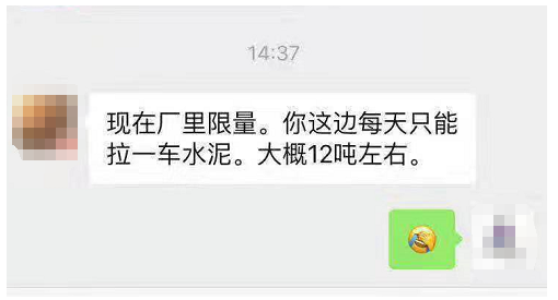 14日,湖南某企業(yè)銷售經(jīng)理通知經(jīng)銷商限量供應(yīng),每天只能拉一車水泥約12噸左右。經(jīng)銷商感嘆錢不是問題,問題是沒水泥。