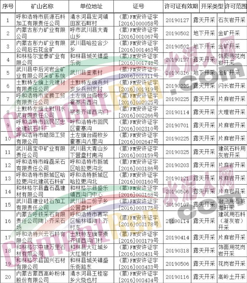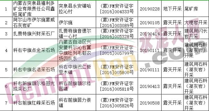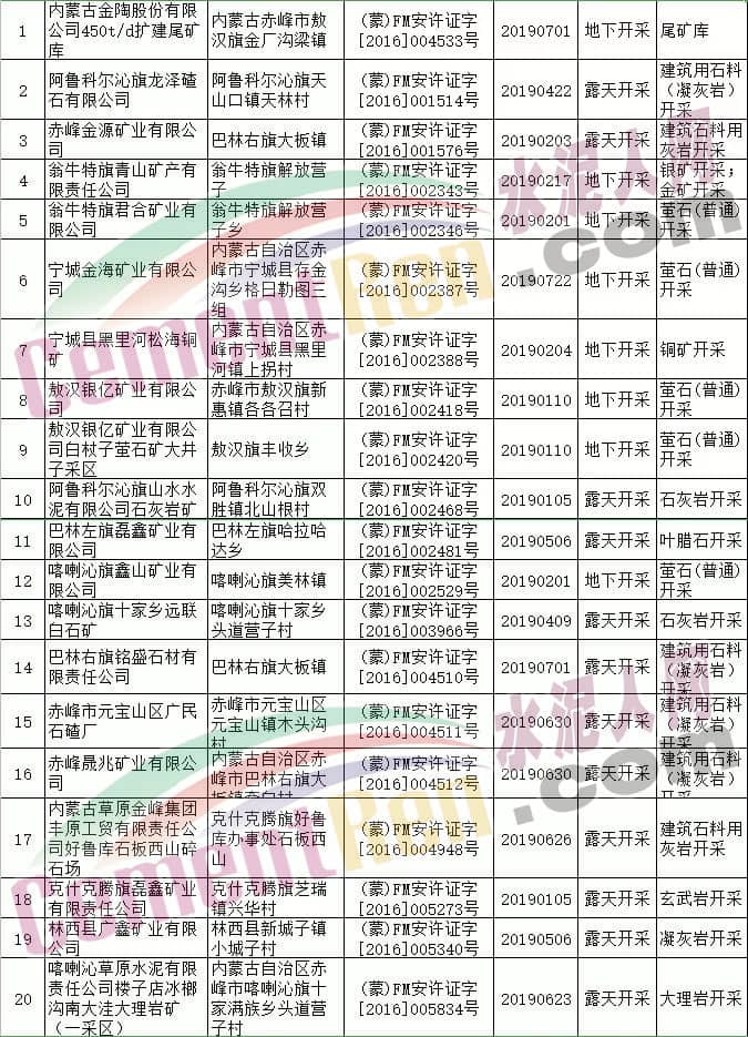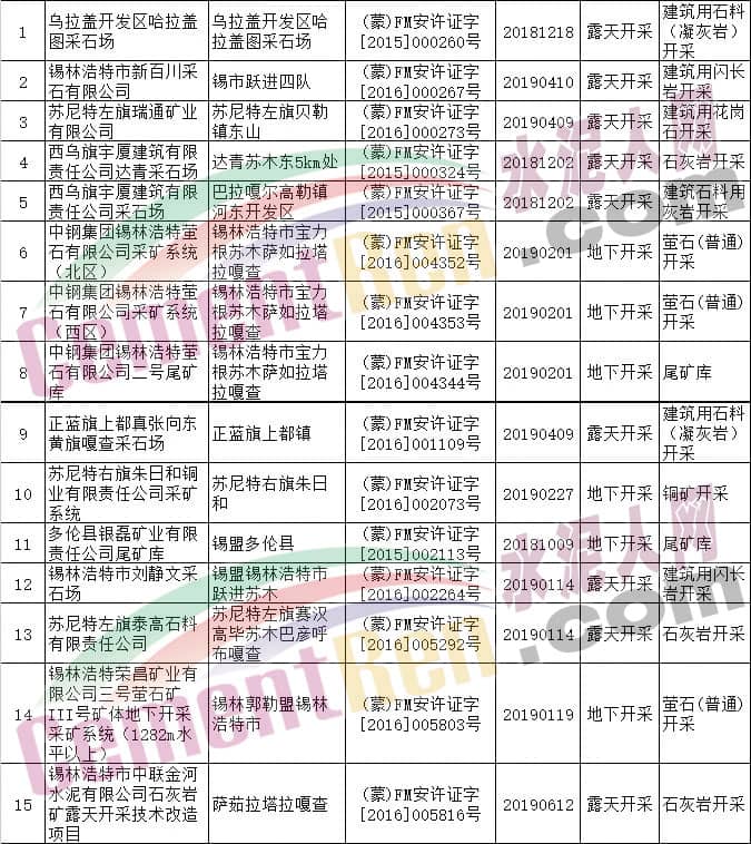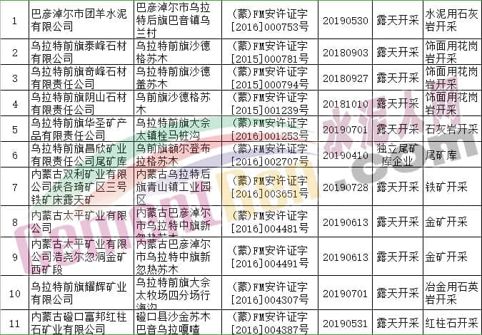 據(jù)內(nèi)蒙古自治區(qū)應(yīng)急管理廳公布消息,根據(jù)《中華人民共和國行政許可法》等有關(guān)規(guī)定,決定依法注銷呼和浩特市辰源石料加工有限責(zé)任公司等116個非煤礦山安全生產(chǎn)許可證。其中包括水泥行業(yè)阿魯科爾沁山水水泥有限公司石灰?guī)r礦、扎賚特旗山水水泥有限公司水泥用石灰?guī)r礦、準(zhǔn)格爾旗鑄城水泥有限責(zé)任公司石灰?guī)r礦、巴彥淖爾市團(tuán)羊水泥有限公司水泥用石灰?guī)r礦等多家水泥企業(yè)礦山。詳情如下: